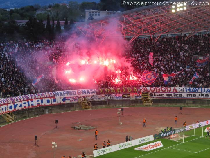 Mit neun Meistertiteln und Cupsiegen ist Hajduk der erfolgreichste kroatische Verein im ehemaligen Jugoslawien – und bezieht vor allem auch daraus seine bis heute anhaltende riesige Popularität (9 Meistertitel und 8 Cupsiege kommen dann noch im unabhängigen Kroatien dazu). Nicht ganz umsonst war damals in der südlichsten Stadt der Welt bei einem U15-Spiel der einzige Zuschauer außer mir ein kroatischer Argentinier und „natürlich“ Hajduk-Fan. Die Gruppierung „Torcida“, bereits 1950 gegründet, gilt als älteste Fanvereinigung Europas.