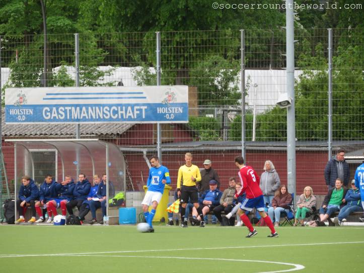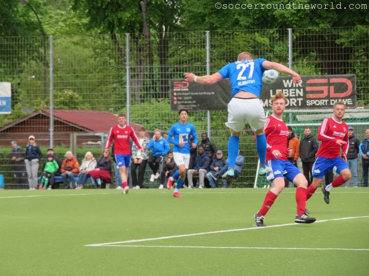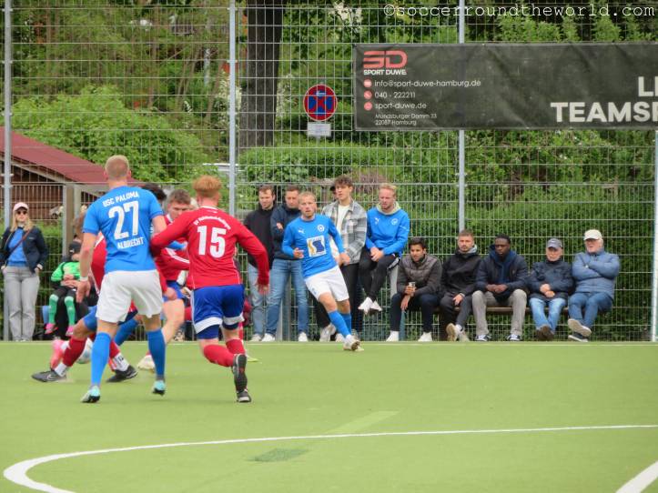 Die Hoffnung auf einen erneuten Finaleinzug lockt heute jedenfalls viele Zuschauer:innen auf den Platz, auch einige Fans der Gäste finden sich ein. Grundsätzlich sind die Rollen relativ klar verteilt, teilt man immerhin mit der Hamburger Oberliga auch dieselbe Spielklasse. Während die „Tauben“ hier an der Tabellenspitze mitflattern, hat Halstenbek-Rellingen gerade erst den Klassenerhalt fixiert.