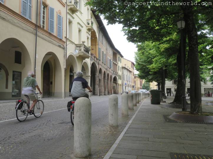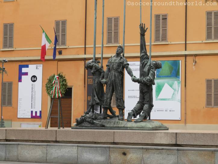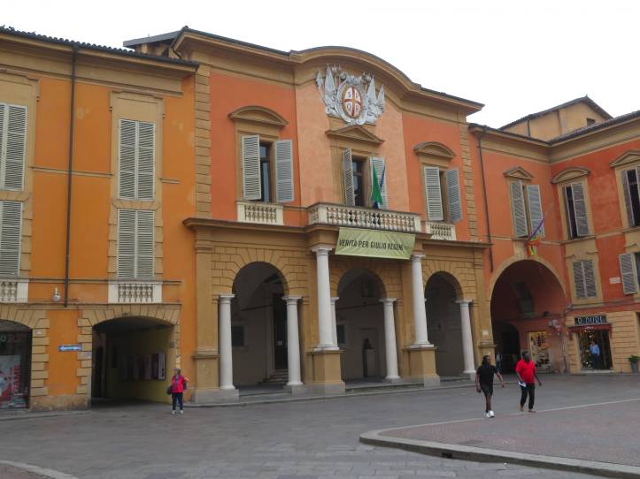 Reggio Emilia ist DIE Stadt der italienischen Nationalfahne. 1797 wurde die von Ingenieur Ludovico Bolognini entworfene grün-weiß-rote Flagge als Symbol für die lediglich bis 1805 bestehende Repubblica Cisalpina angenommen. Als diese dann ins neugeschaffene Königreich Italien eingegliedert wurde, wurden auch die Nationalfarben mitübernommen. Heute hat die zwischen Modena und Parma gelegene Stadt rund 200.000 Einwohner:innen. Das Zentrum ist – trotz heut extrem schwüler Hitze – wirklich sehenswert, vor allem auch aufgrund seiner zahlreichen schön angelegten Plätze.