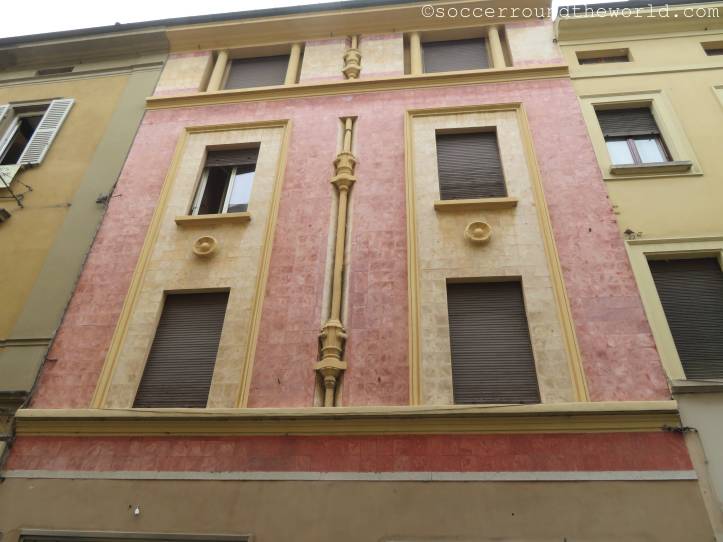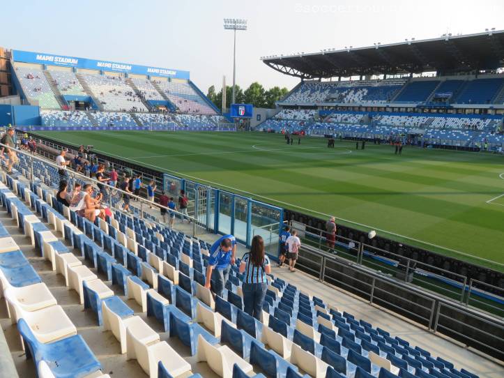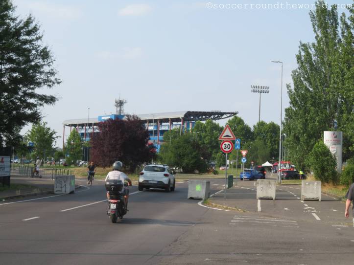 Das hiesige Stadion ist im Ligabetrieb auch nach dem Sponsor Mapei benannt und Heimstätte sowohl für US Sassuolo wie auch AC Reggiana. Es liegt doch ein beträchtliches Stück außerhalb des Zentrums. Öffentlich angebunden ist es de facto gar nicht. 40 Minuten Fußmarsch sind also für mich die Alternative zu einem Taxi.