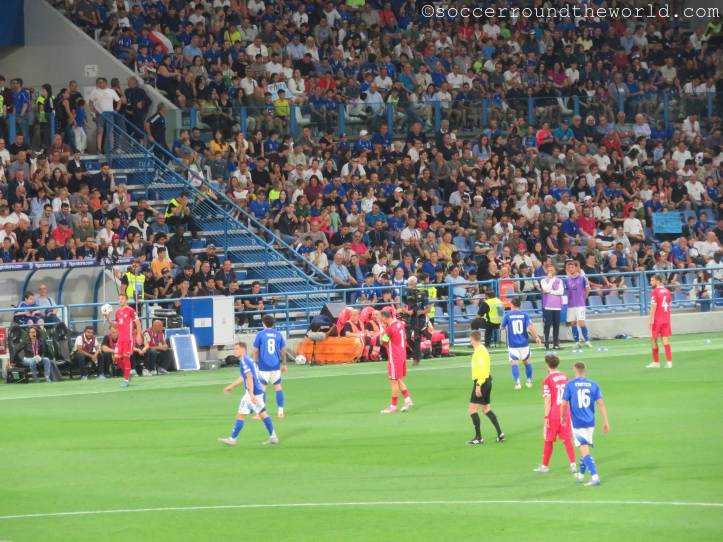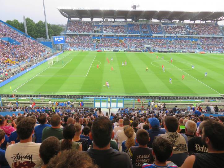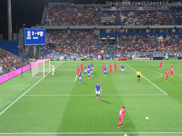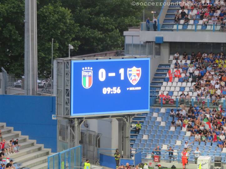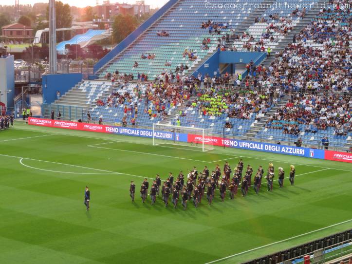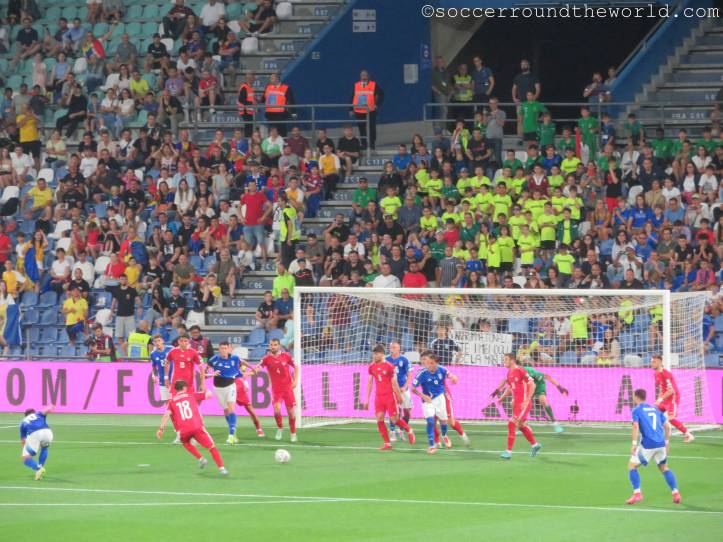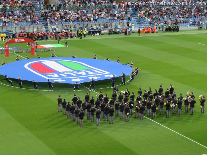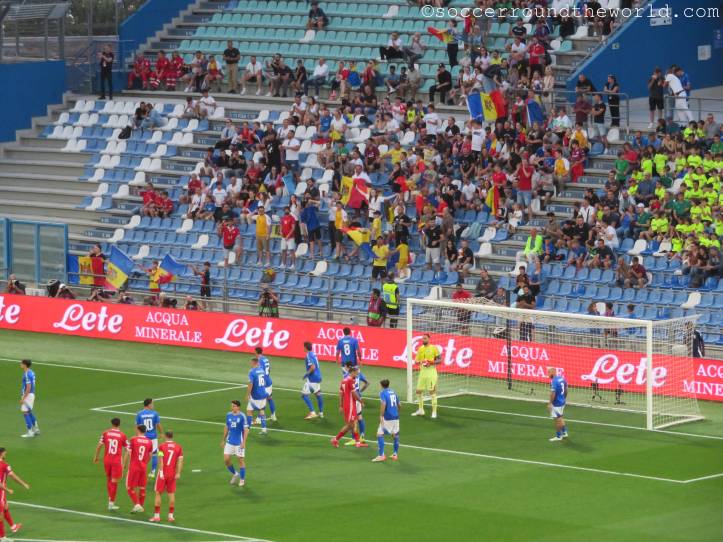 Kurz darauf machen sich zur völligen Verblüffung der heimischen Fans selbst auf der Haupttribüne die moldawischen Anhänger:innen lautstark bemerkbar und feuern ihr Team an. Dadurch herausgefordert, schwanken die Azzuri auf den Rängen zwischen Entzückung und Verzweiflung, weil ihr Team nicht und nicht das Abwehrbollwerk Moldawiens knacken kann. Der Übergang von blinder Anfeuerung zu wüster Beschimpfung ist jedenfalls ein fließender.