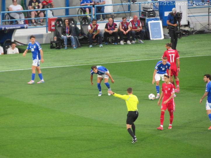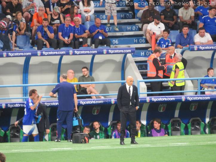 Im Spiel spiegelt sich sehr viel von der nun zu Ende gehenden Beschäftigung von Coach Spalletti, aber auch der Beziehung von den Italiener:innen zum Fußball. Trotz zuletzt wirklich würdeloser Leistungen (0:3 in Norwegen) wird das Nationalteam frenetisch empfangen, nur für den Trainer hagelt es ein Pfeifkonzert. Und selbst das geht dann am Schluss sogar in einen verhaltenen Applaus über. Standing Ovations schauen aber eindeutig anders aus.