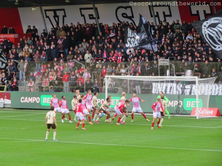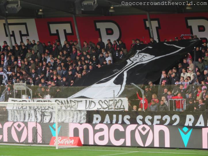 Während die videoverliebten Selbstdarsteller sehr rasch das Weite suchten, als ihnen alles andere als Gegenliebe entgegenschlug, ist SSE22 weiterhin an Bord und derzeit Grund für heftigste Fanproteste. Auch heute sind Fahnen, Schals und Spruchbänder mit „Raus SSE22“ überall im Hintertorbereich zu sehen. Vor einem Monat reiste die Fanszene sogar zur Firmenzentrale in Hamburg und brachte dort ihren Protest lautstark zum Ausdruck – unter anderem auch mit Tennisbällen, DEM Erkennungsmerkmal der Proteste gegen den Investoreneinstieg in der deutschen Bundesliga vor einigen Jahren.