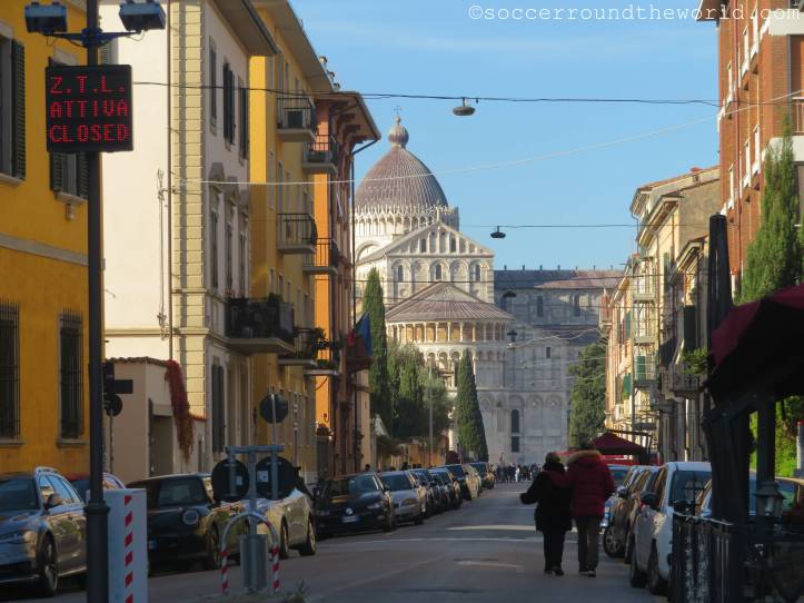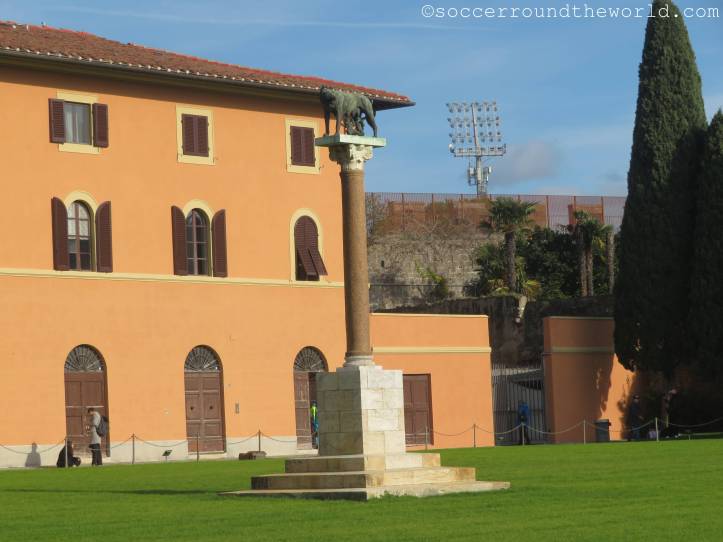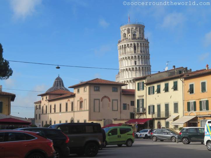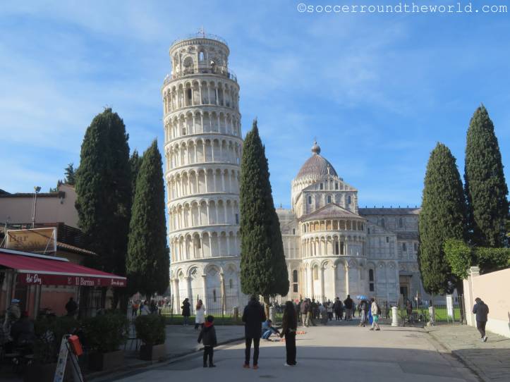 Die wirklich großen Fragen wurden heute alle gestellt. Etwa, ob dieser Turm nur deswegen schief steht, weil der Baum vor dem Eingang als Maßstab genommen wurde. Gelöst wurde weder diese noch eine der unveröffentlichbaren Ratereien, dafür aber Teile unserer Brieftasche, als wir die Karten für dieses Serie-A-Spiel erworben haben. Fußball in Italien bedeutet neben Spaß und Fankultur eben immer auch ein bisschen Leid.