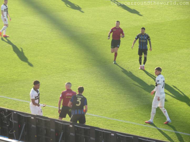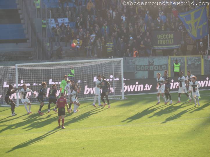 Relativ rasch wird klar, warum beide heute antretenden Mannschaften eher im unteren Tabellendrittel zu verordnen sind. Flüssiges Spiel ist – vor allem in der ersten Halbzeit – Mangelware, über die Nettospielzeit bei dieser Partie muss wohl eindeutig der Mantel des Schweigens gehüllt werden. Dennoch kann ich die Aufregung meiner Platznachbarn über die lediglich zwei Minuten Nachspielzeit durchaus verstehen. Allein die VAR-Überprüfung des gegebenen und auch verwandelten Elfmeters für Parma hatte wohl schon in etwa diese Zeit verschlungen. Doch – bei allem Respekt, und wie dann auch Hälfte 2 noch zeigen sollte: Selbst 10 Minuten Plus hätten die Heimmannschaft meiner Meinung nach einem Tor nicht sonderlich wahrscheinlich nähergebracht.