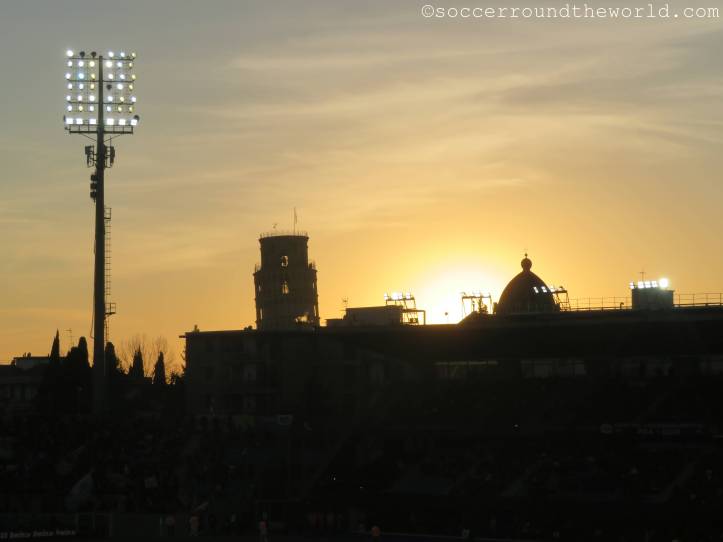 Der Pisa Sporting Club besteht in der ein oder anderen Form seit 1909, trägt den berühmten Turm (mindestens seit 1980) im Wappen und weist äußerst bescheidene sportliche Erfolge auf. 1921 spielte man im Finale um die italienische Meisterschaft, 1986 und 1988 triumphierte der Klub im damals schon völlig bedeutungslosen Mitropa-Cup. Frisch aufgestiegen erlebt Pisa heuer die erst achte Saison, und noch dazu die erste seit 34 Jahren, in der höchsten italienischen Liga.