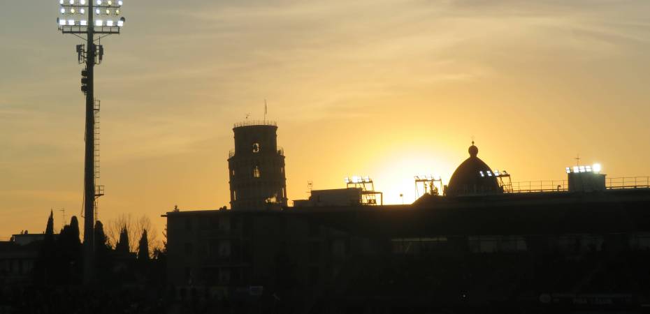 Der Pisa Sporting Club besteht in der ein oder anderen Form seit 1909, trägt den berühmten Turm (mindestens seit 1980) im Wappen und weist äußerst bescheidene sportliche Erfolge auf. 1921 spielte man im Finale um die italienische Meisterschaft, 1986 und 1988 triumphierte der Klub im damals schon völlig bedeutungslosen Mitropa-Cup. Frisch aufgestiegen erlebt Pisa heuer die erst achte Saison, und noch dazu die erste seit 34 Jahren, in der höchsten italienischen Liga.