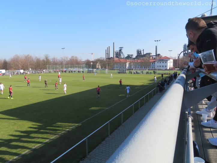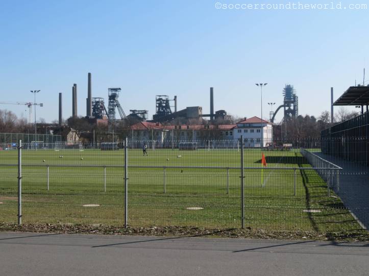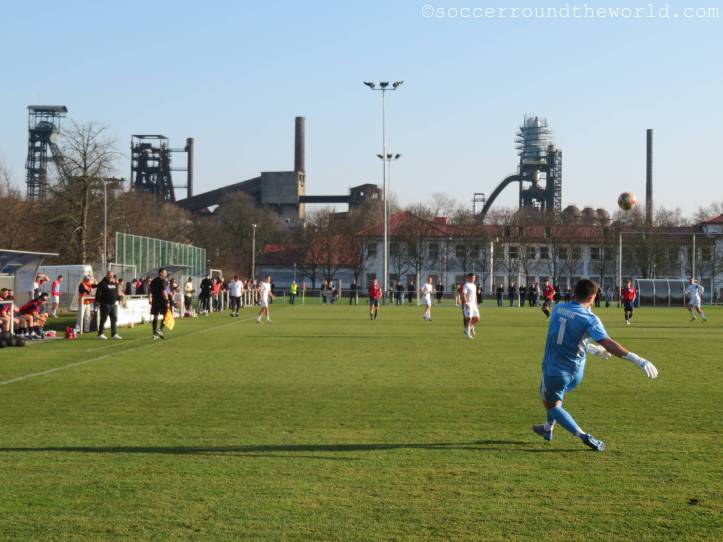 Es gibt schon mehrere Gründe, Ostrava zu besuchen. Das hab ich bei meinen letzten Visiten immer wieder feststellen können (November 2014, September 2018). Bei einem Match von TJ Unie vorbeizuschauen würd wohl von allen am wenigsten Sinn zu machen, gäbe es da nicht diese herrliche Aussicht auf ein Eisenwerk direkt hinter einem der Tore. Die ikonische Skyline hat es sogar auf die Trikots des Klubs geschafft.