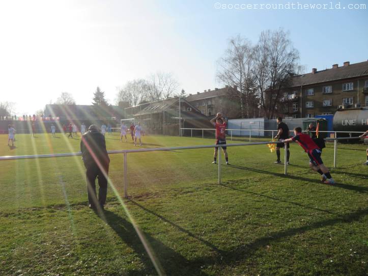 Es ist Frühjahrsauftakt in der dritten tschechischen Liga, und auf die Gastgeber wartet mit dem Tabellenführer gleich eine schwere Aufgabe. Aus dem nahen Trinec sind einige – vor allem singfreudige – Fans mitgekommen, und diese sehen lange ein durchaus offenes Match. Zwar blitzt bei Trinec immer wieder die technische Überlegenheit hervor, Unie hält aber durchaus stark dagegen.