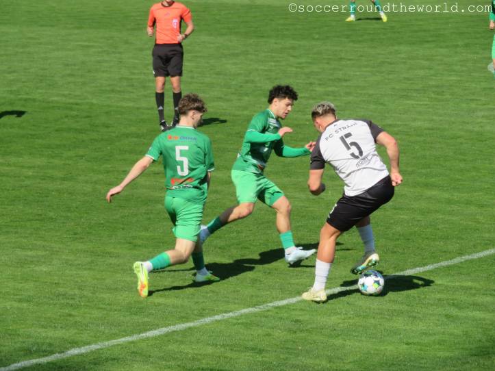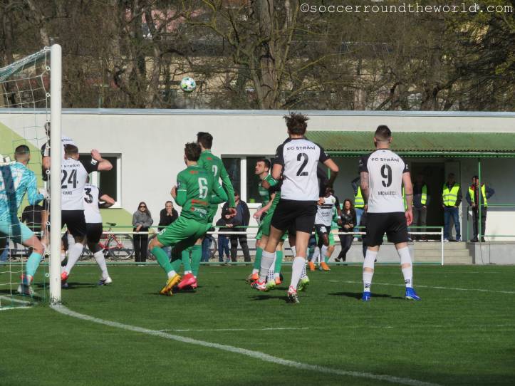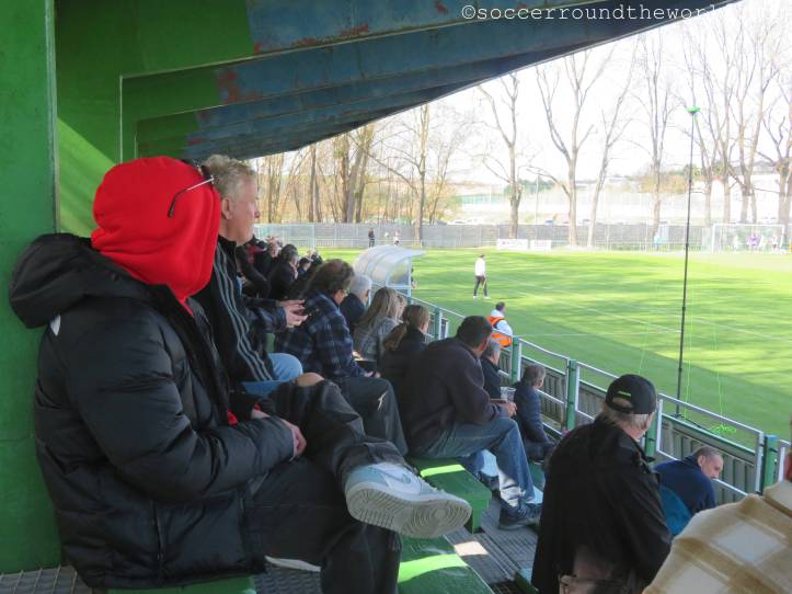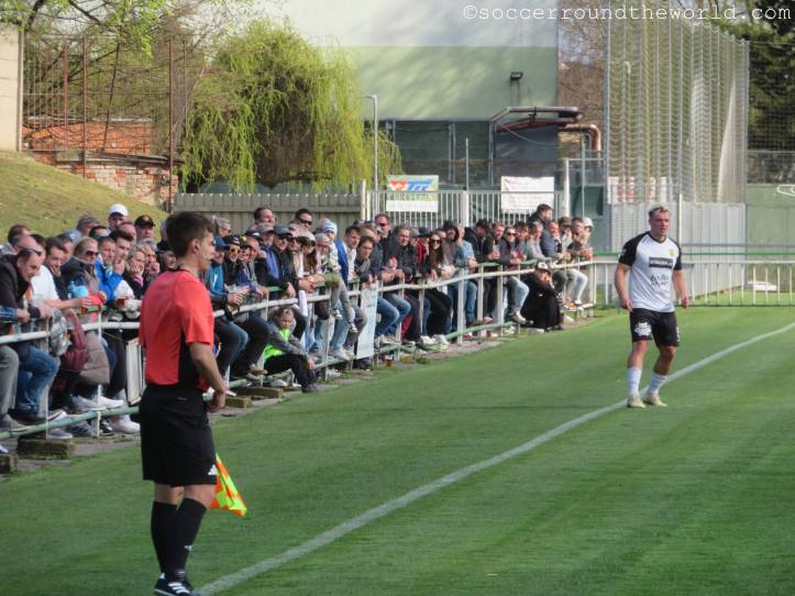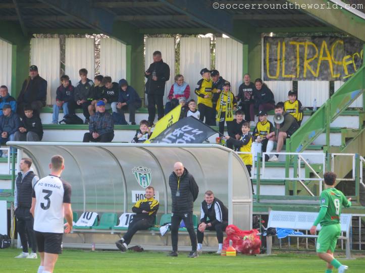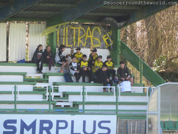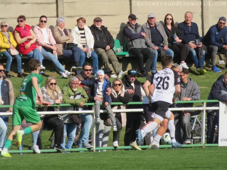 Das sehr klare Ergebnis für Strani täuscht hier. Über weite Strecken ist die Partie zäh und zerfahren, wenn auch die von einem kleinen Ultra-Block mit Durchschnittsalter 10 angefeuerten Gäste immer leicht überlegen sind. Erst durch einen Elfmeter kurz vor der Pause gelingt die Führung, die weiteren drei Treffer fallen bereits gegen Ende des Spiels.